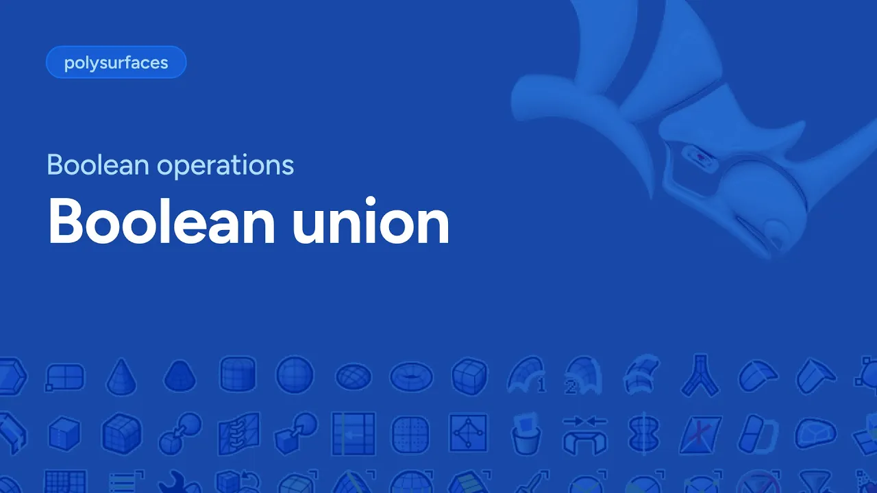 The BooleanUnion command merges multiple closed solid polysurfaces into a unified solid where they overlap. It removes the intersecting interior geometry and leaves behind one seamless object. This is ideal for combining complex shapes during the modeling process or preparing geometry for export and 3D printing.