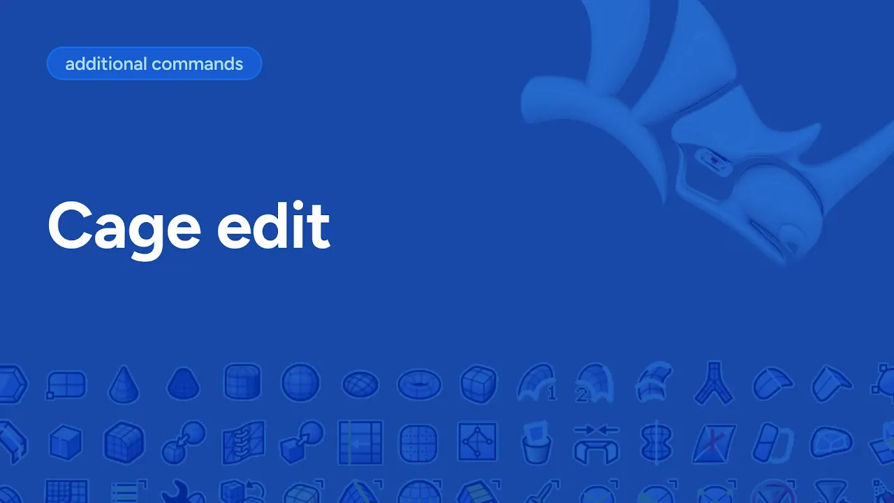 The CageEdit command places a “cage” (a lattice or bounding‐volume grid) around selected geometry. When you move, rotate, or scale the cage’s control points, the captured geometry inside follows the deformation. This provides a non‑destructive, flexible method for altering form without directly editing edges or surfaces.