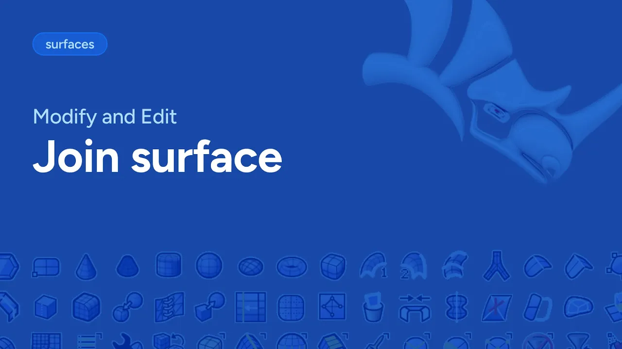 The Join command merges selected surfaces that share touching edges into a single object. When used with surfaces, this creates a polysurface --- Rhino's term for a surface object made of multiple joined patches. It's a vital tool in solid modeling and preparing geometry for fabrication, export, or Boolean operations.