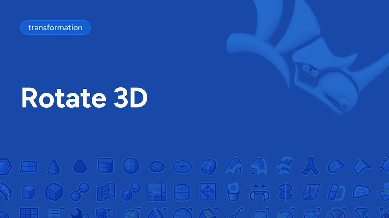 The Rotate3D command lets you spin curves, surfaces, solids, or groups around a custom axis in 3‑D space (not just perpendicular to the active construction plane). You define the axis by picking two points in space, then apply a rotation by a specified angle or by selecting reference points. This is especially useful for modeling sloped panels, assemblies with angled joints, or any geometry that does not align with world axes.